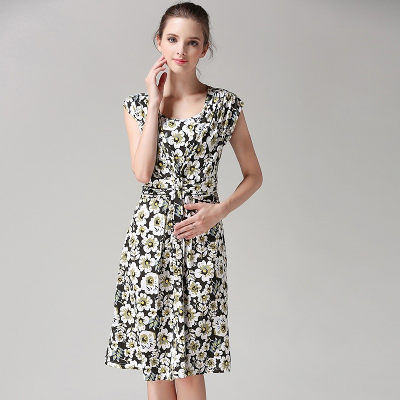 New Spring and Autumn Maternity Dress Stretch Fabric Maternity Clothes Nursing Clothes Adjustable Waist Buckle -