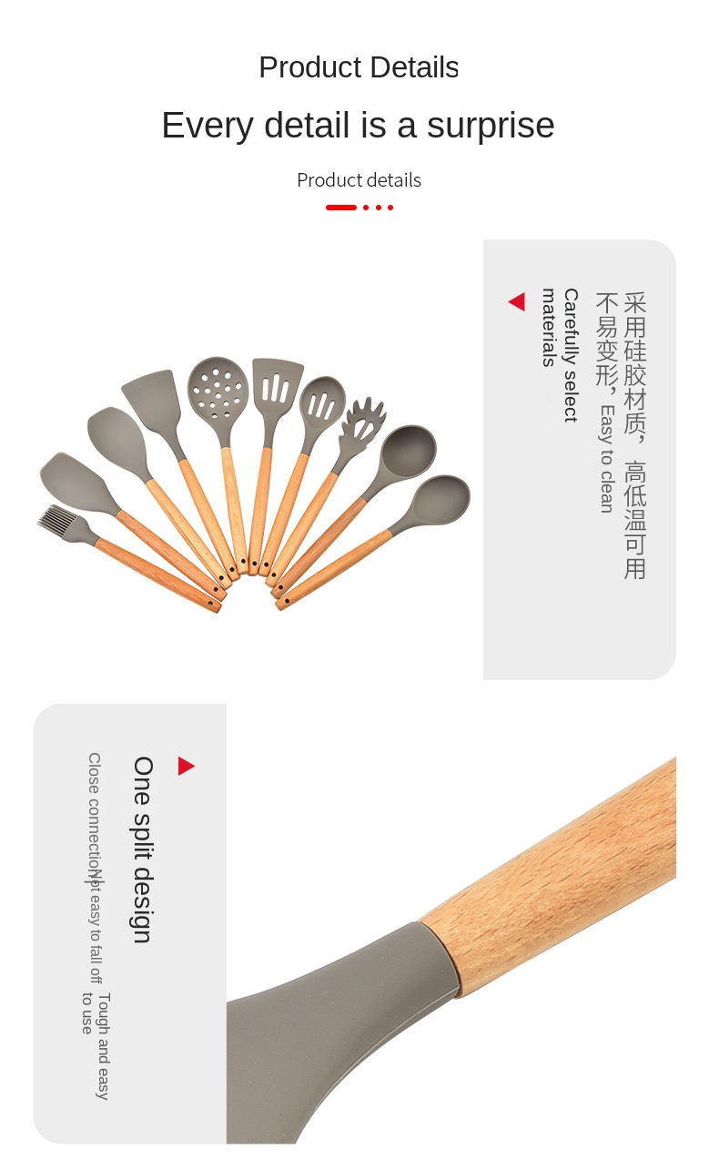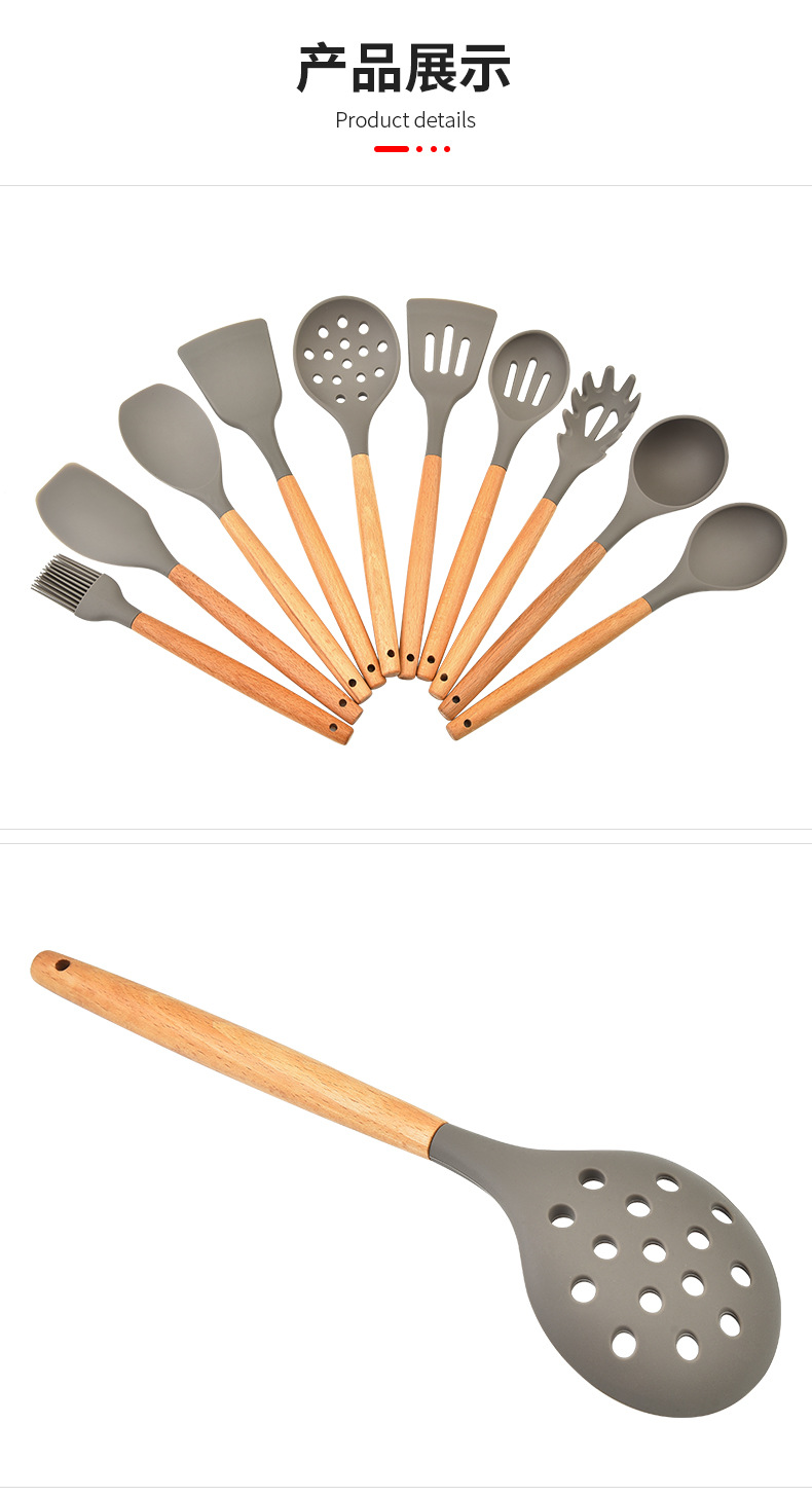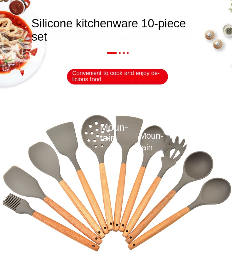 Hot selling 10 piece kitchen utensil set with wooden handle silicone cooking spoon spatula kitchen tool set