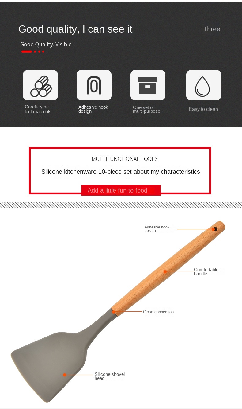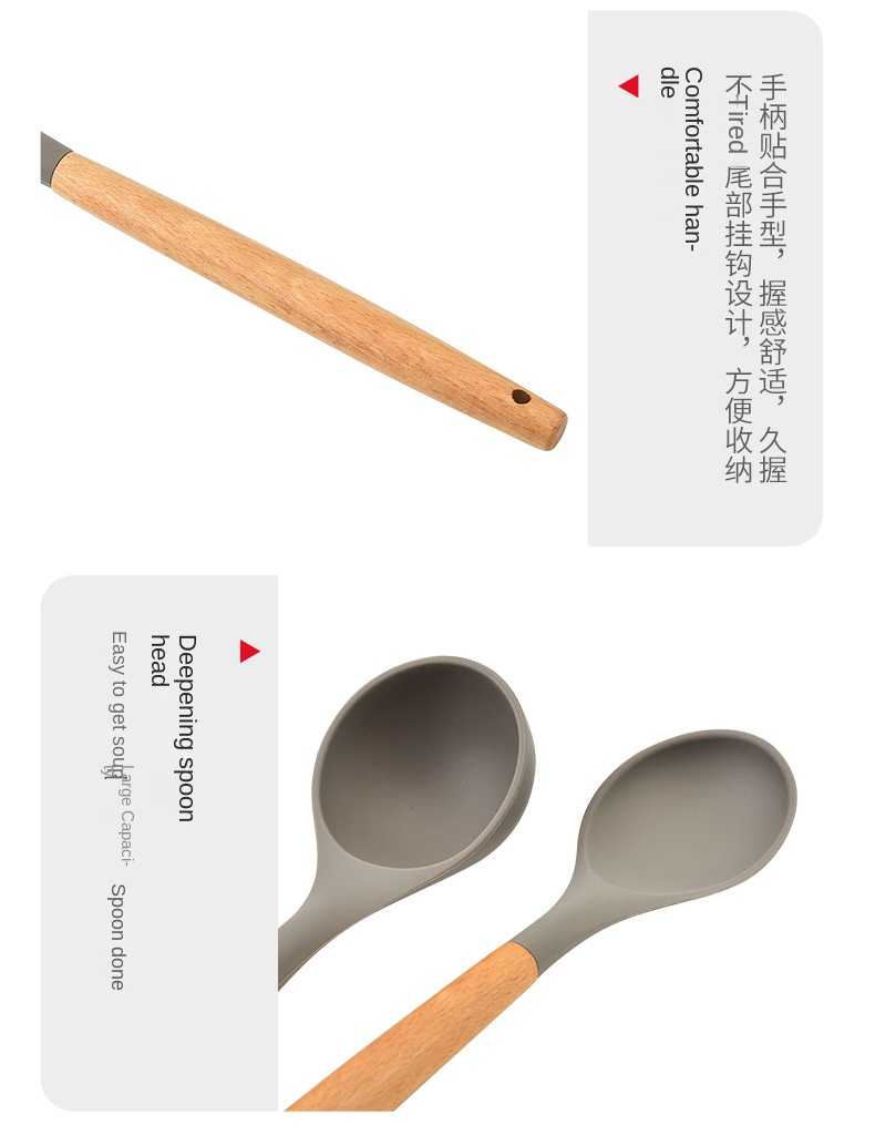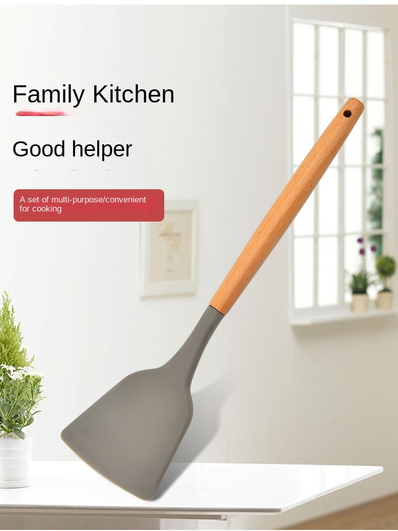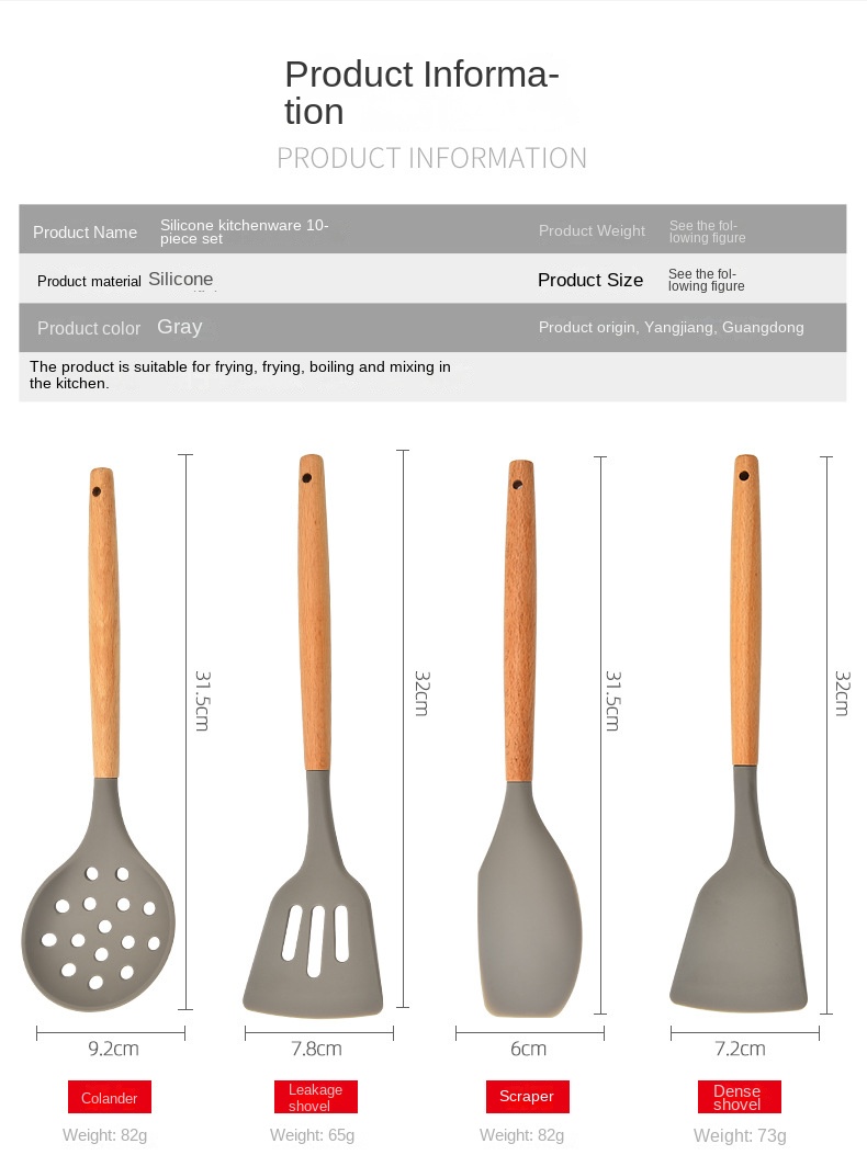 Hot selling 10 piece kitchen utensil set with wooden handle silicone cooking spoon spatula kitchen tool set