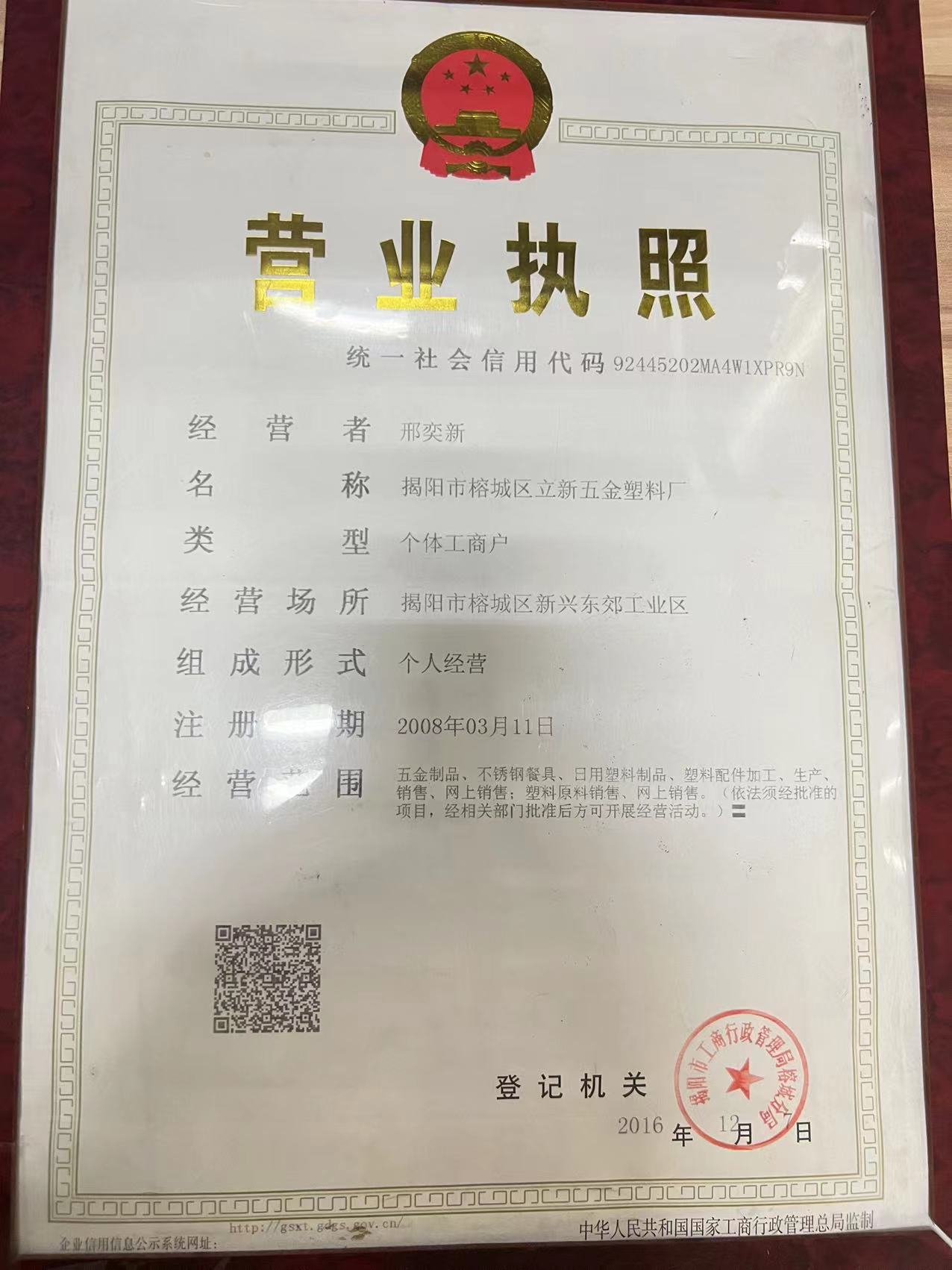 - Jieyang City Rongcheng District Lixin Metal And Plastic Factory
