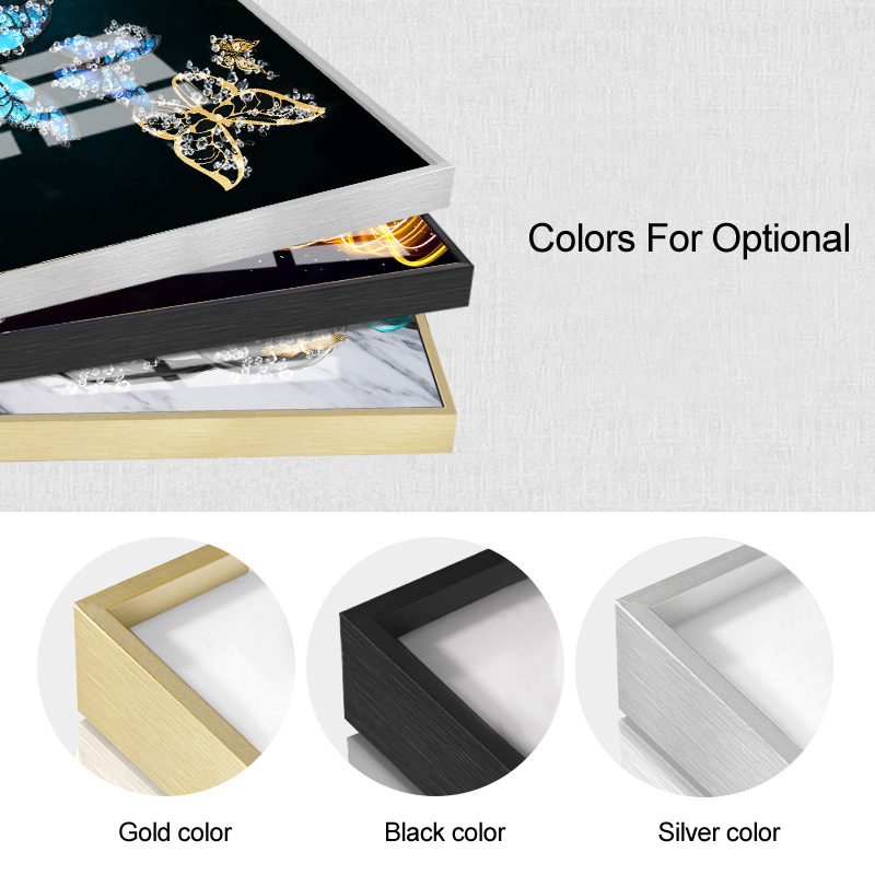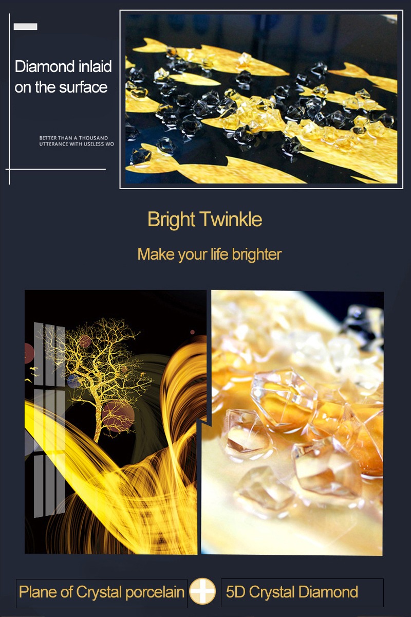 Hotel Entrance Decoration Luxurious Abstract Golden Crystal Porcelain Custom Wall Glass Photo Frame Picture Art
