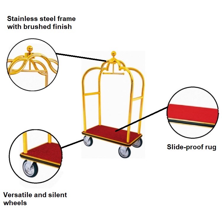 Hotel Stainless Steel Bird Cage Lobby Metal Luggage Cart