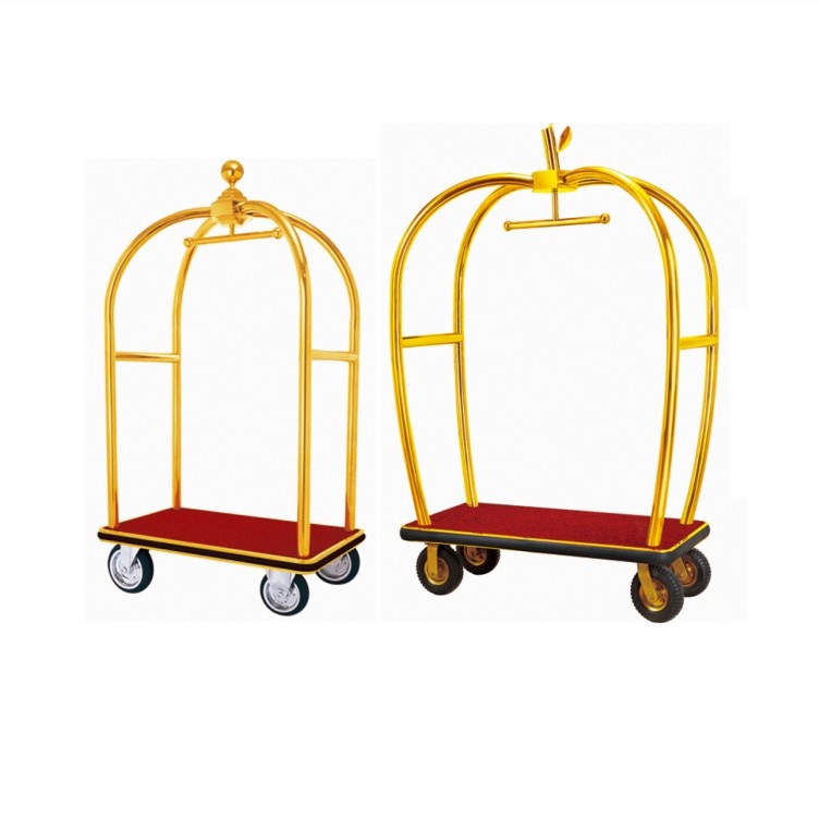 Hotel lobby furniture Bellman light hotel luggage trolley with brake