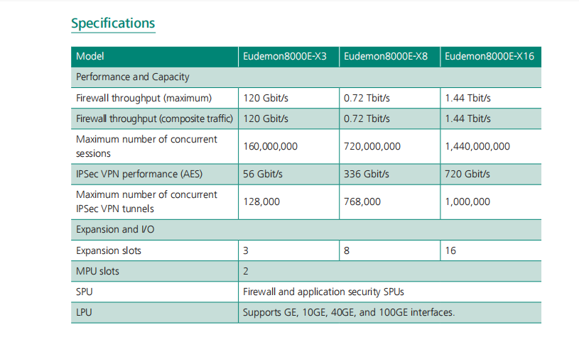 Eudemon8000E-X16, providing industry-leading security protection and scalability, up to 1.44Tbit/s firewall