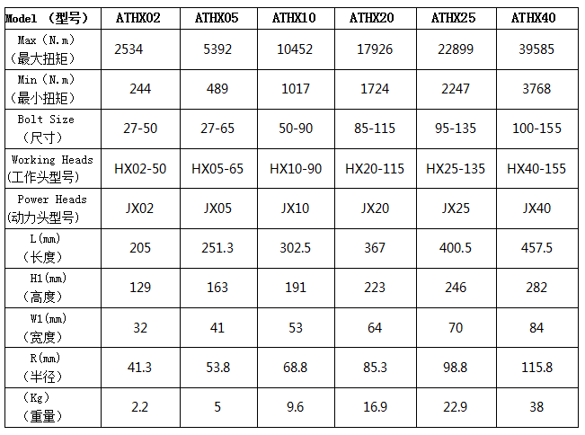 1. Power head JX02~JX40 tool head HX50~HX155: