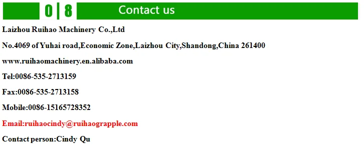 Laizhou Ruihao Machinery Co., Ltd. is located in Laizhou, Shandong Province, China, which was established in the year of 2010. We are a specialized manufacturer of forestry and agricultural implements or attachments, such as log grapple, felling grapple, hydraulic rotators, tractor log skidder, grapple bucket, etc. . Also, we can offer OEM service. With the good test equipment, 100% of products are well exported for worldwide, like France, Germany, Canada, Sweden, Australia and Bulgaria