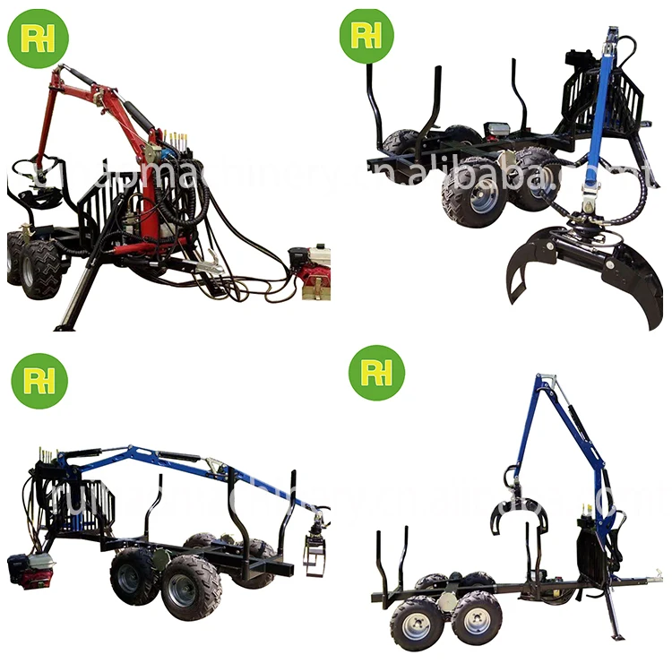 Hydraulic log trailer forestry for atv 4wd with grapple and gasoline engine