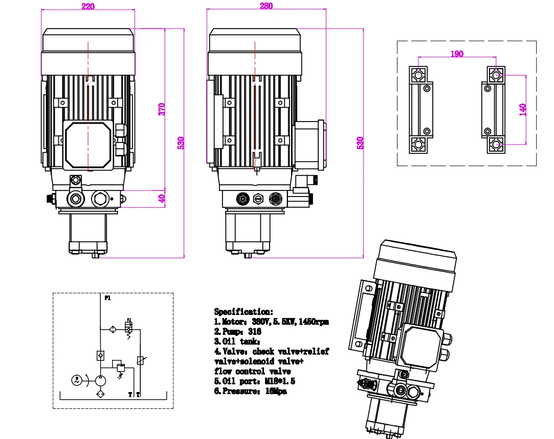 Hydraulic power unit AC electric pump Lifting platform electric pressure package Mini hydraulic station high power
