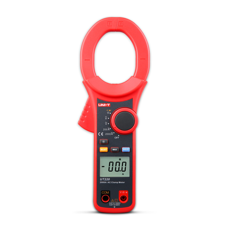 UT220 series is a 2000A AC and DC digital clamp meter. This series ensures stable, safe and reliable performance when measuring AC (DC for UT221) currents up to 2000A. It is designed with overload protection for all ranges and is ideal for all professionals measuring currents up to 2000A (2500A for UT222).