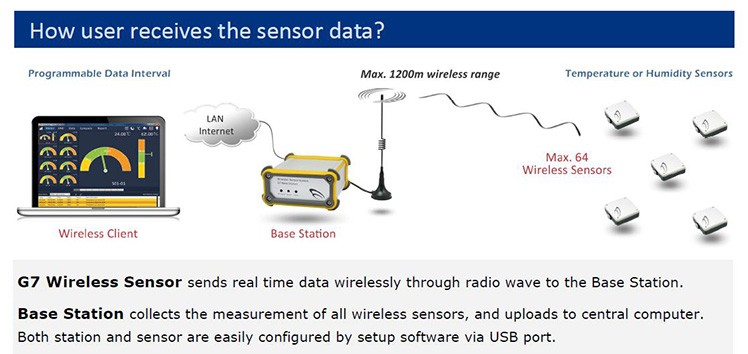 Using the G7 wireless analog sensor and base station, you can start monitoring sensor measurements remotely online.