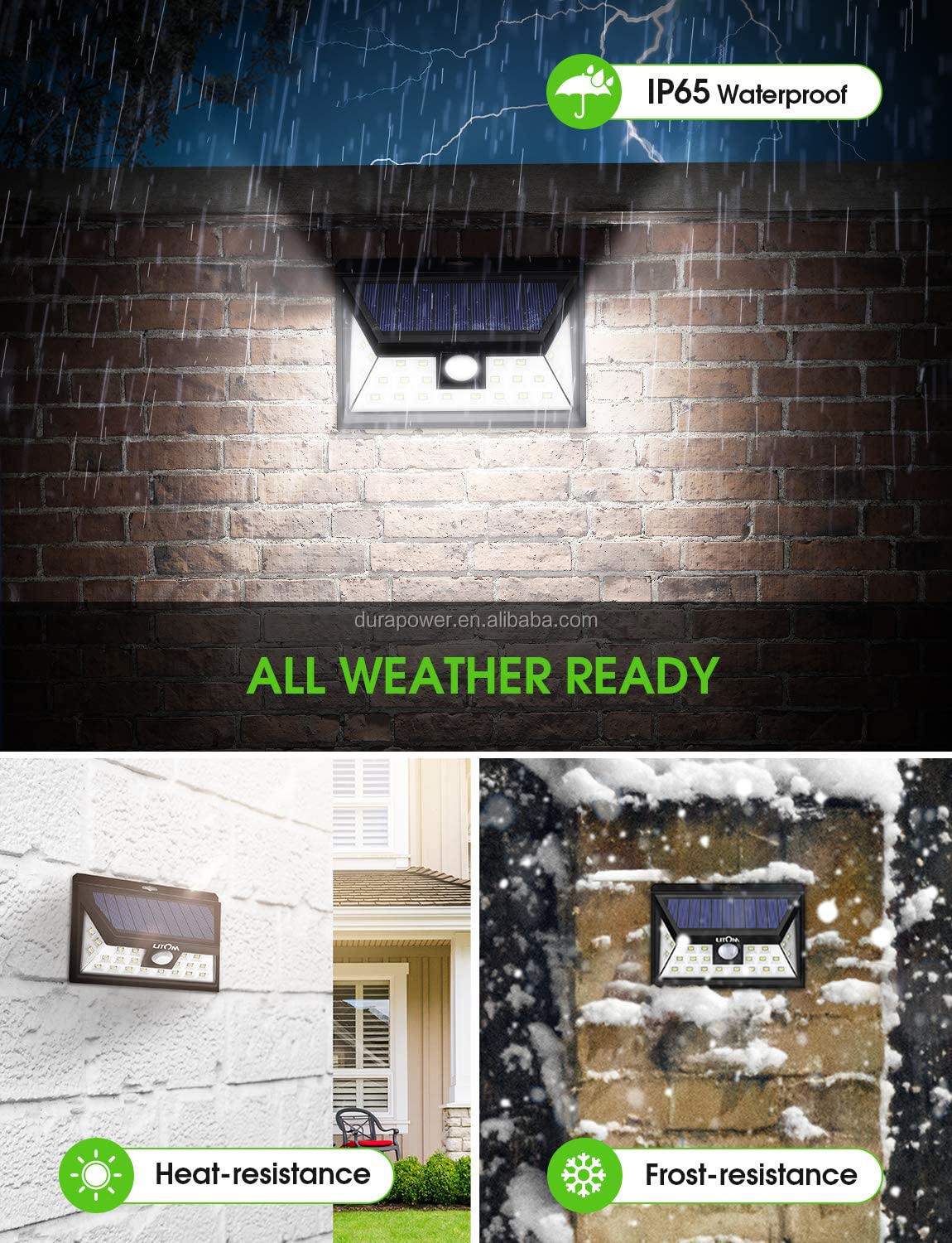 The photovoltaic conversion rate of LED solar motion lights is as high as 21%, ensuring efficient lighting. IP65