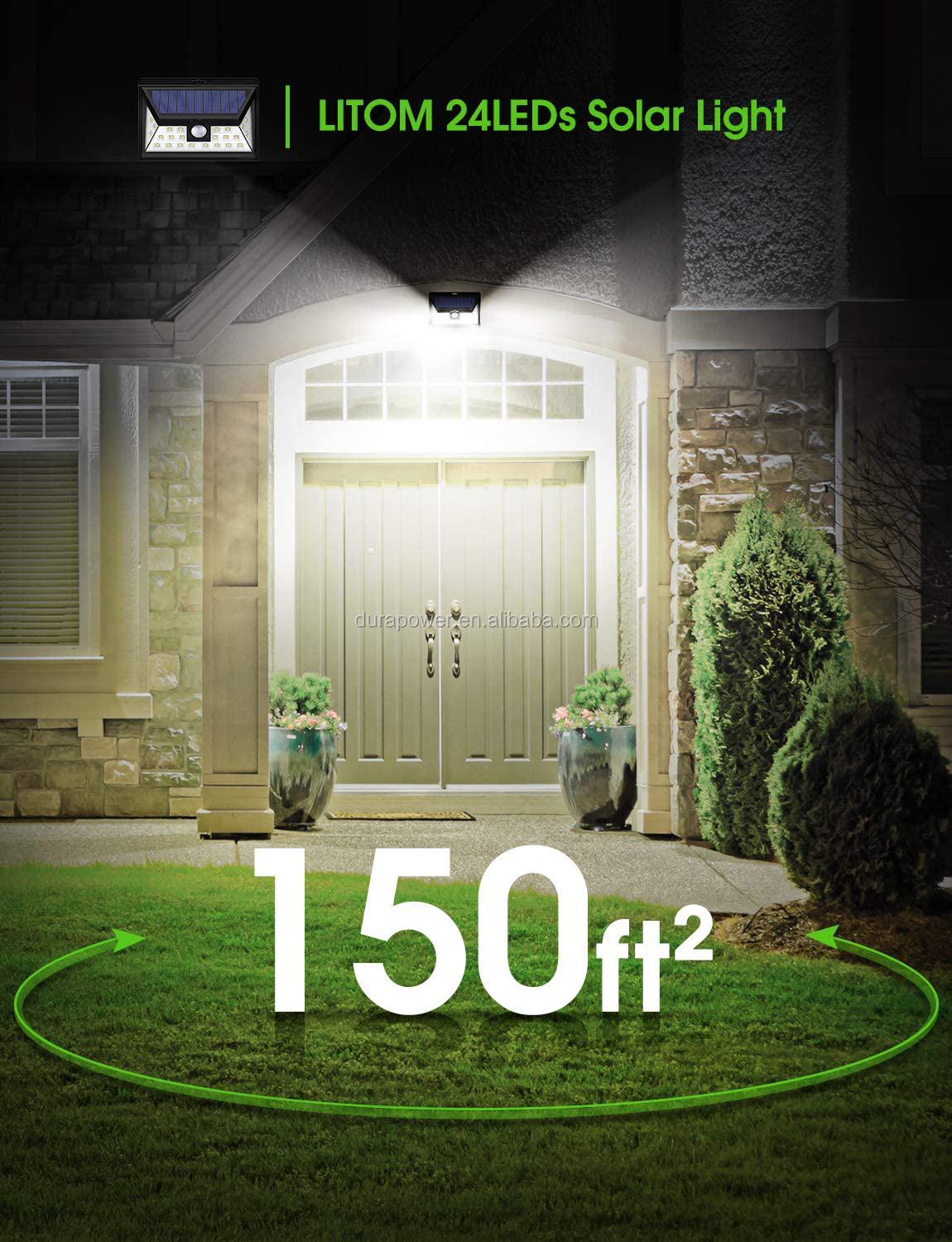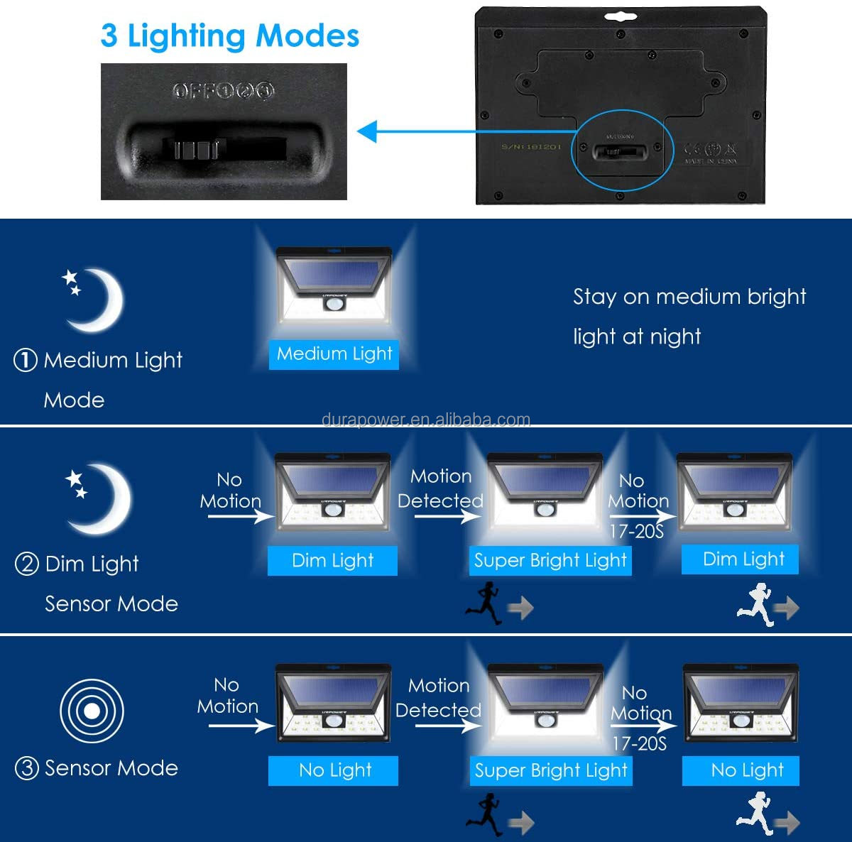 IP65 Wide Angle 3 Selectable Modes Wireless Motion Sensor LED Solar Wall Light