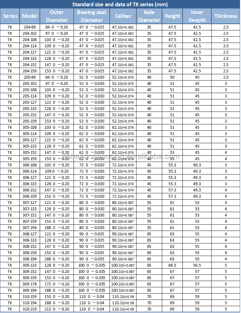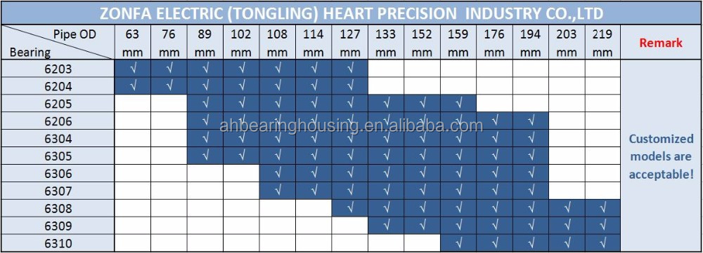 For bearings:6203. 6204. 6205. 6206. 6304. 6305. 6306. 6307. 6308. 6309. 6310. 6312