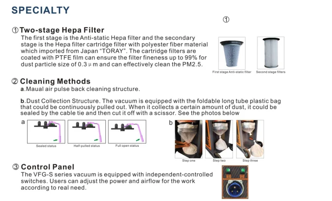 NTS-S vacuum cleaners can be used in single-phase work areas, and the air volume can be adjusted according to actual needs.