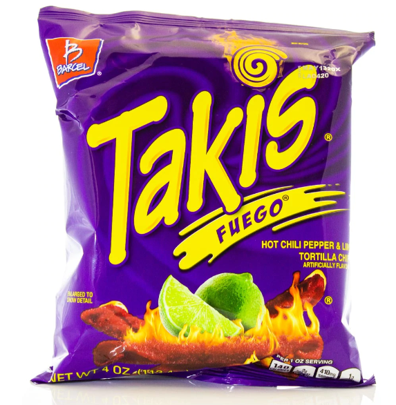 Extremely Spicy Chili and Lime Tortilla Chips burst with flavor in every bite. Each crunchy tortilla burrito tingles your palate with bursts of fiery cayenne and lime. These spicy nachos are sure to excite chip lovers, but beware—once you've tried taki, regular comfort food will never compare.