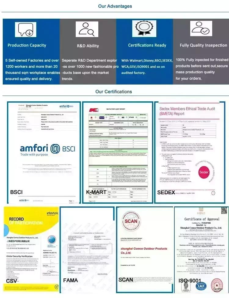 Certificate: WCA,GSV,BSCI,ISO9001,Sedex,etc.
