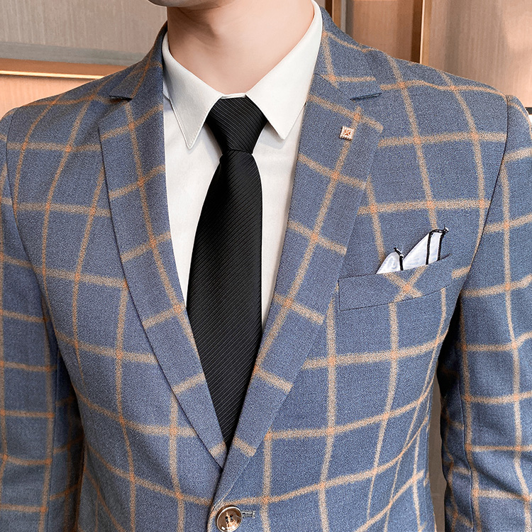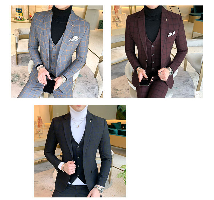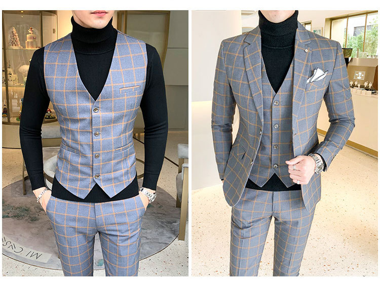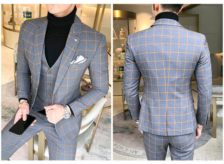 Men's Formal Suits Gray Birthday Tweed Suit Three Piece Elegant Dress Plaid Men's Suit