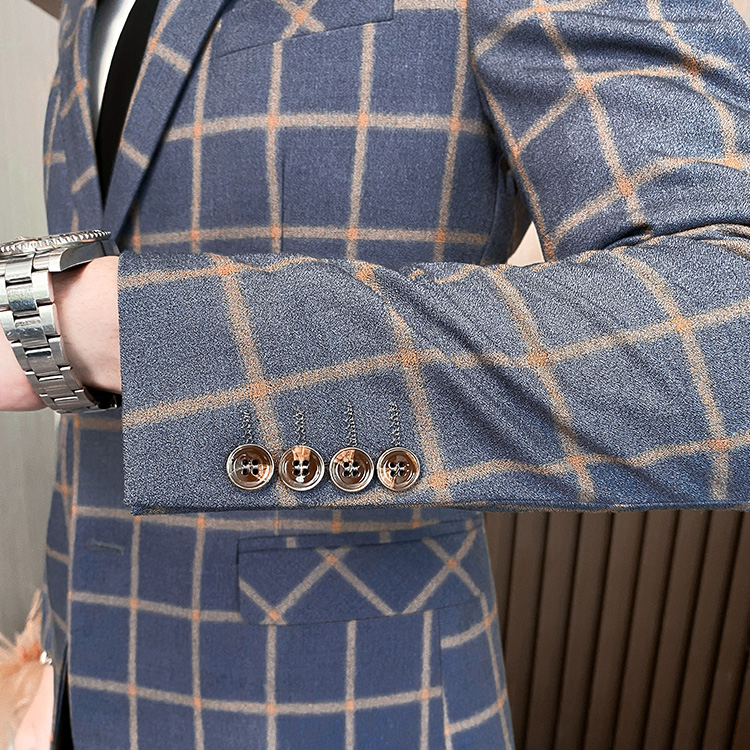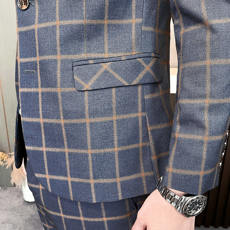 Instocks Men's Formal Suit For Shipping Gray Birthday Tweed Suit Three-Piece Elegant Suit Check Men's Suit