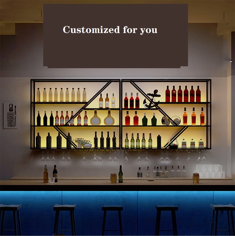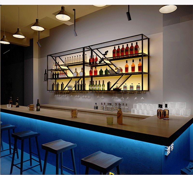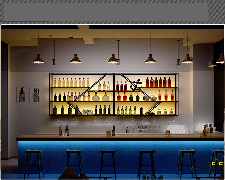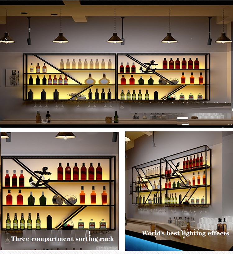 Iron home bar wall hanging retro decoration creative light-emitting rack restaurant red wine metal wine rack wine rack wall hanging