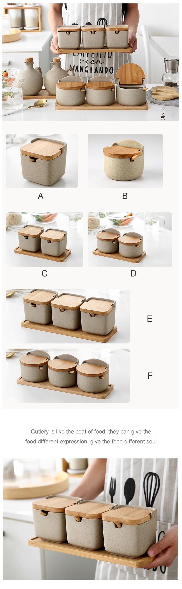 Japanese Kitchen Food Ceramic Storage Bottles and Jars Set with Airtight Bamboo Lid Wooden Seasoning Jars Ceramic Spice Jars