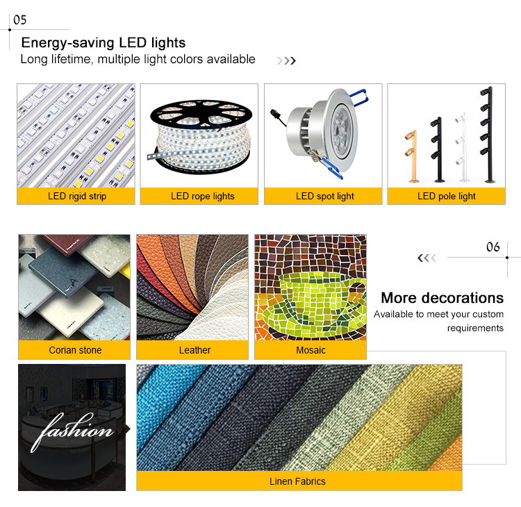 | Supplier Type: | factory | Main ingredients: | Stainless steel, ultra-white tempered glass, PU leather, LED lights |