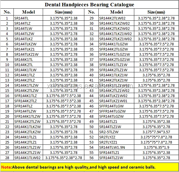 | product name: | Dental drill handpiece bearing SR144TLKZNW | brand: | XRT or OEM service |