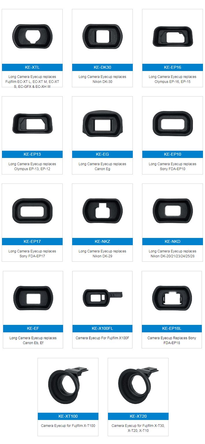 KIWIFOTOS KE Series Long Camera Eyecups are designed for select cameras. During shooting, the eye cup not only protects your viewfinder from bumps and scratches, but also protects the viewfinder from dirt, moisture, dust and unwanted light, thus providing more image details. The KE series eyecup is a long camera eyecup made of durable ABS and soft silicone material. It makes viewing more comfortable when the camera is close to the eye, especially with glasses. It also protects your glasses from scratches.