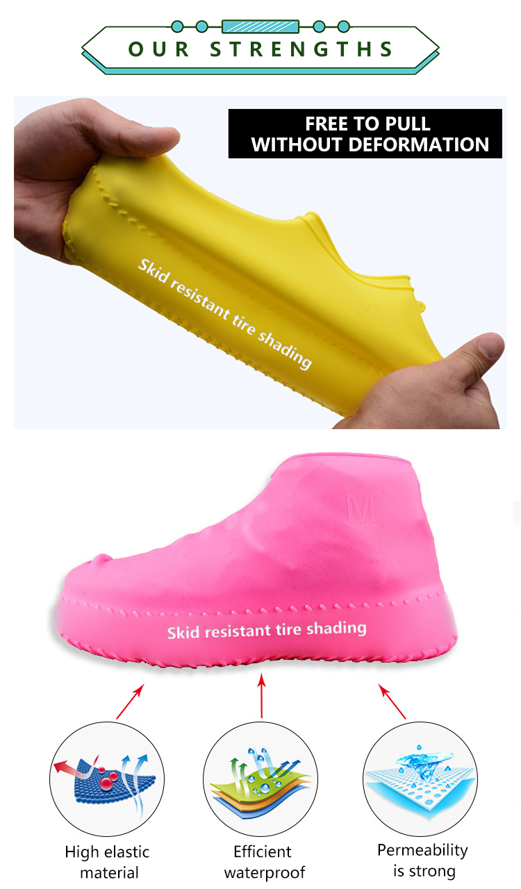 a.The silicone shoe covers are also equipped with a special tread mechanism that prevents the sole from slipping. |
