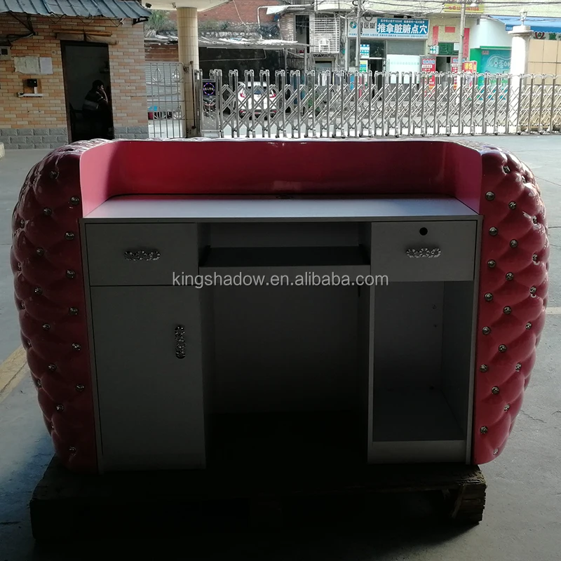 | Product Name: | King shadow salon furniture reception desk pink; | Packaging Detail: | strong packge with 7 ply export carton, splint of wood package; |