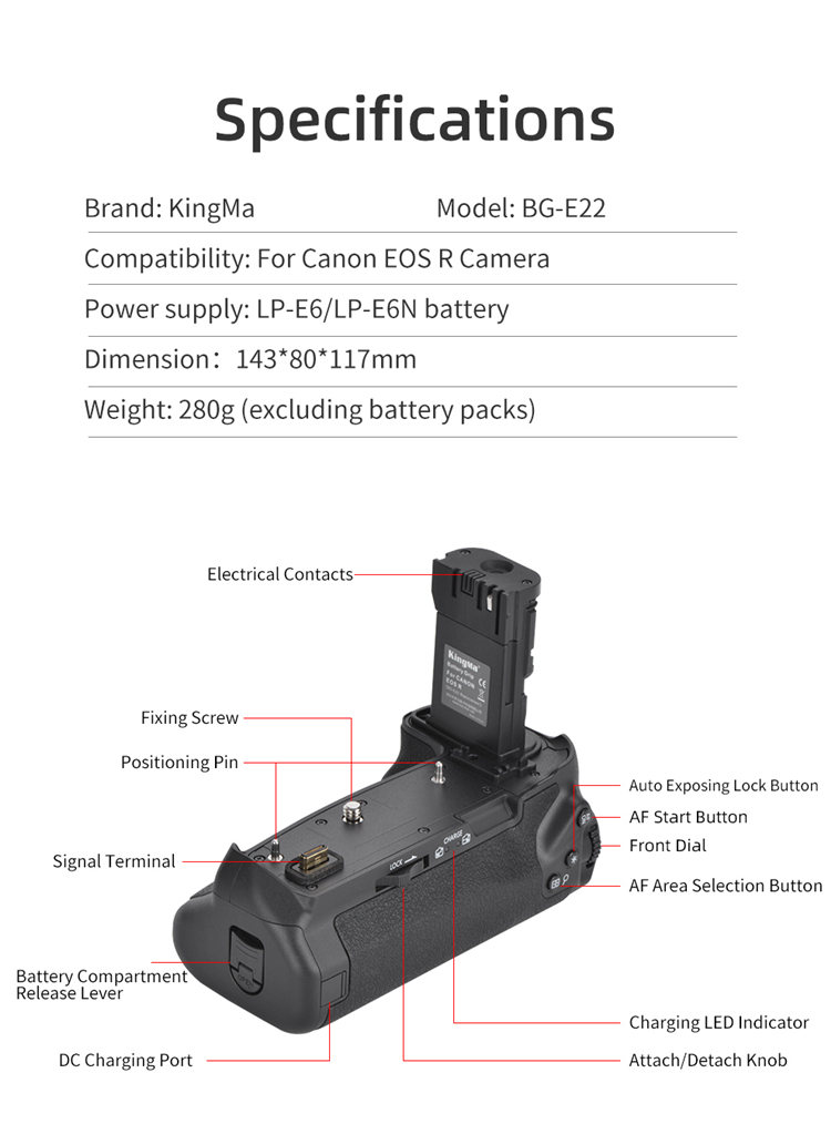 | model: | BG-E22 | weight: | 280 grams, 280 grams |