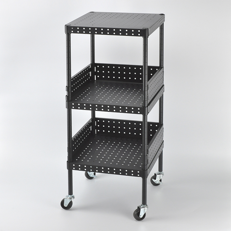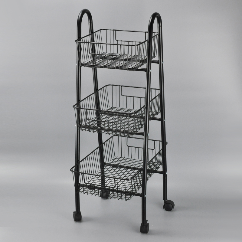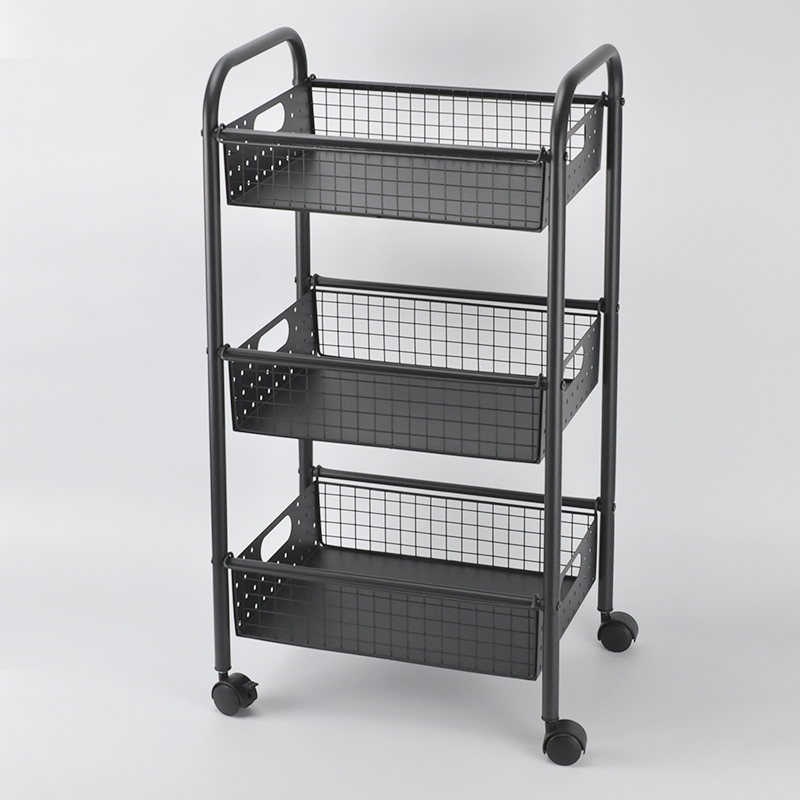 Kitchen 4-Tier Rotatable Metal Mesh Trolley - Black | ||