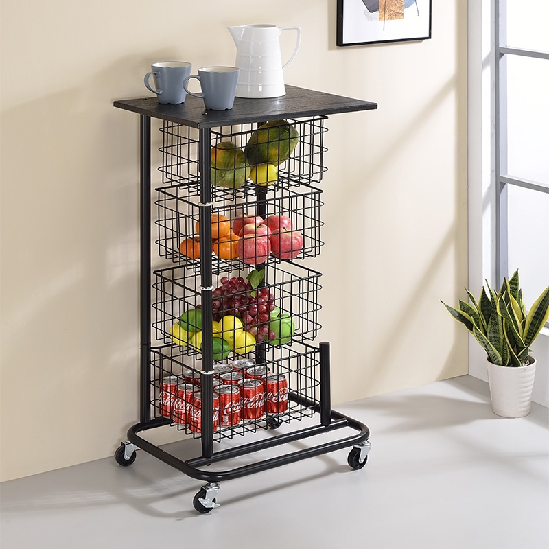 Kitchen 4-Tier Rotatable Metal Mesh Trolley - Black