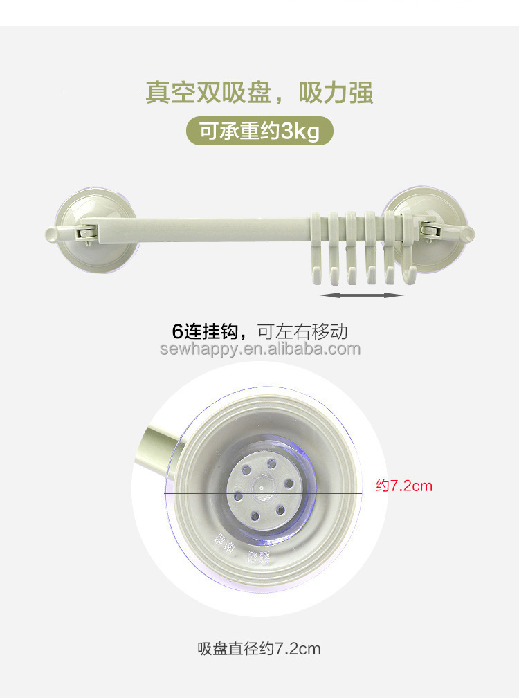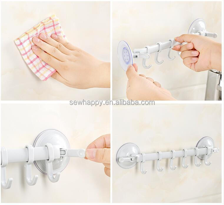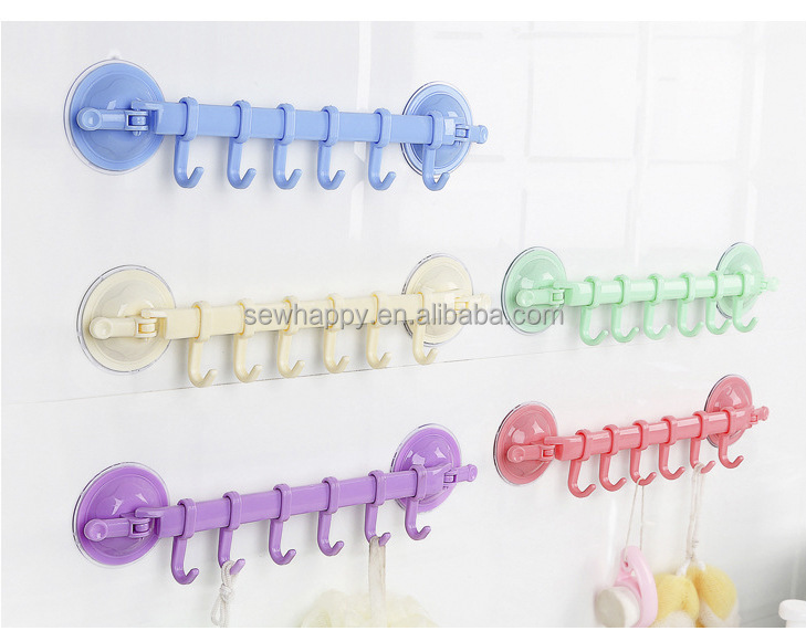 Kitchen Utensil Rail Rack Sticky Utensil Holder Holder with 6 Hooks No Drilling Wall Mount Hanger for Kitchen Utensils Cups Mugs