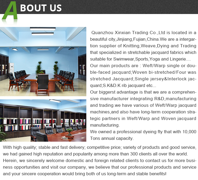 | color: | custom made | work: | 99% Nylon 1% Spandex |