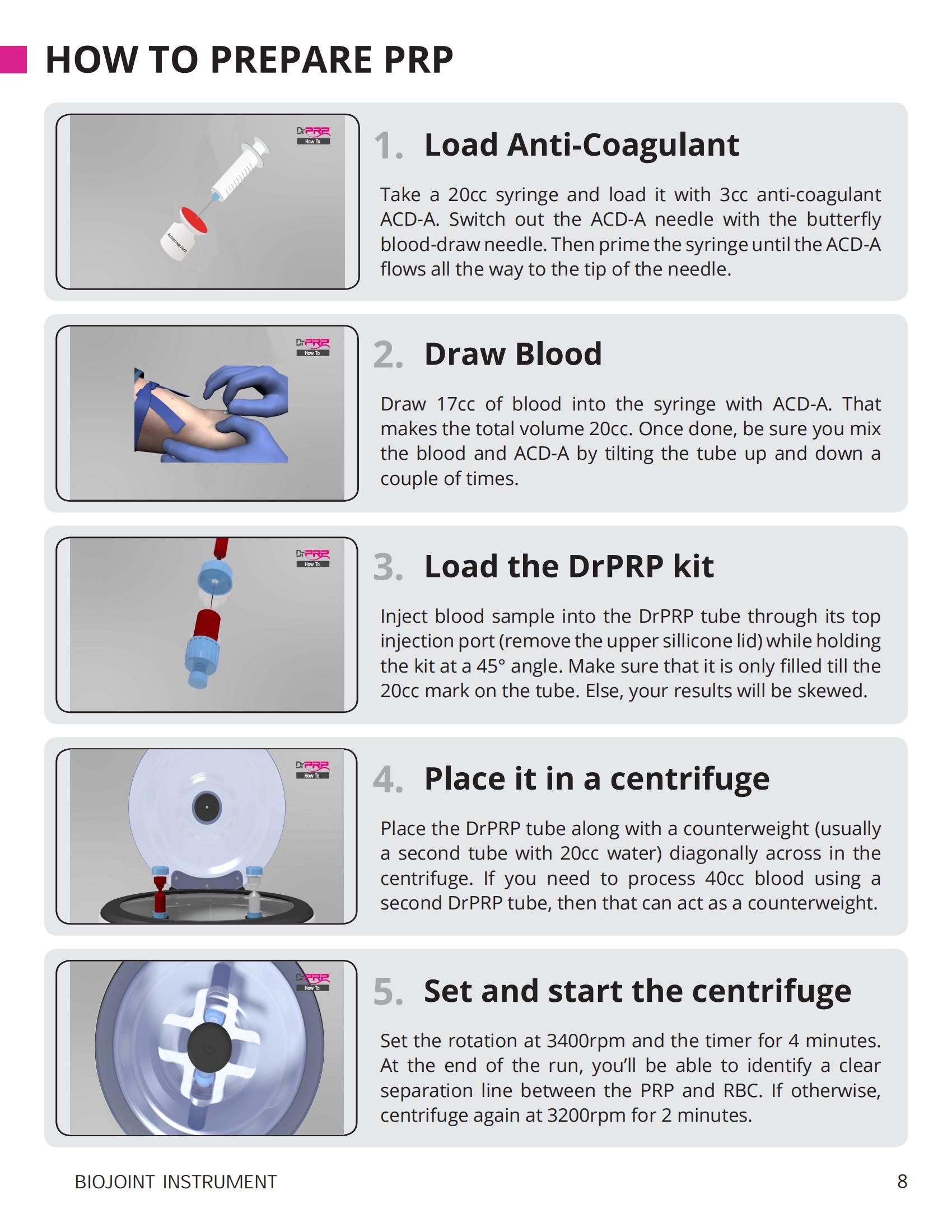 The blood sample is then loaded into a centrifuge and centrifuged for a period of time to separate the components, mainly red blood cells, platelet-poor plasma, and platelet-rich plasma.