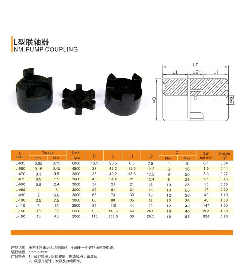 L035 L050 L070 L095 Jaw type rubber coupling:
