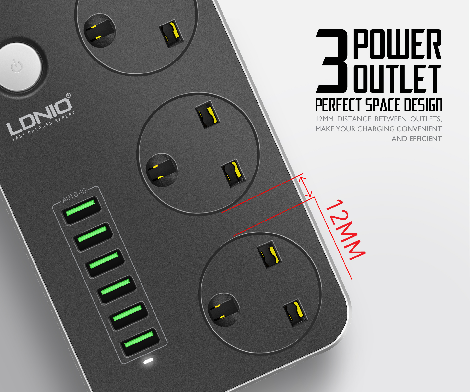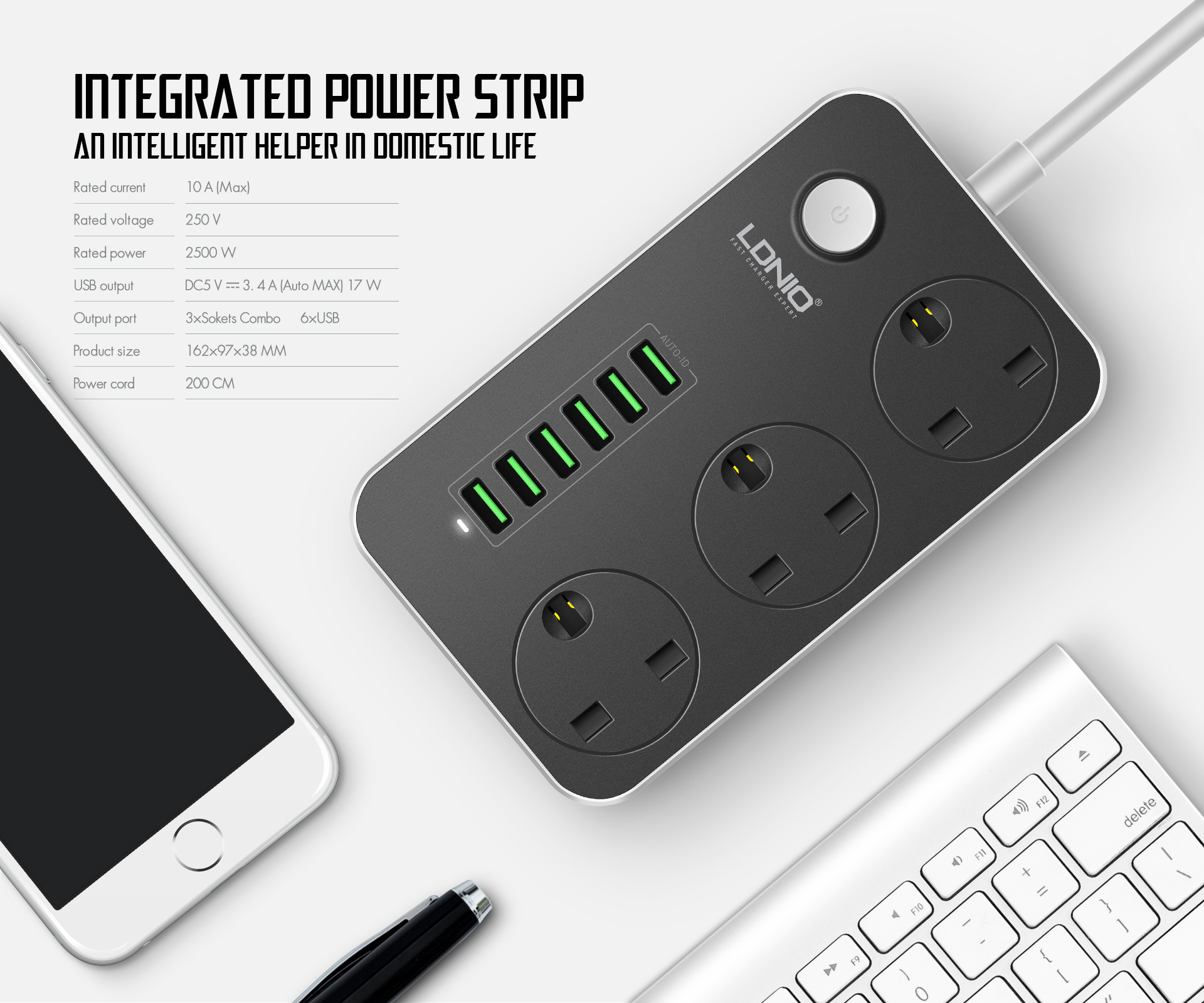 LDNIO Hot UK Extension Socket for UK with 6 USB Strips