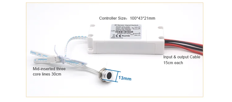Main features: High voltage AC85~250V 500W 2A, the sensor distance is less than 8cm It can be widely used in lighting control, toys, household appliances, kitchen cabinets, cloakrooms, clothing and toys display cabinets, wine cabinets and other products.