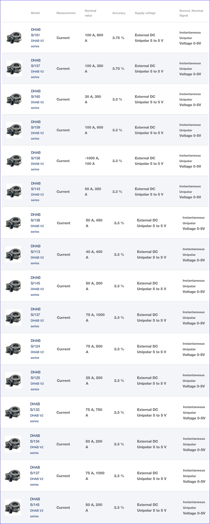 The DHAB series gives you the option to have different current measurement ranges (from ±20 to ±900A) in the same housing