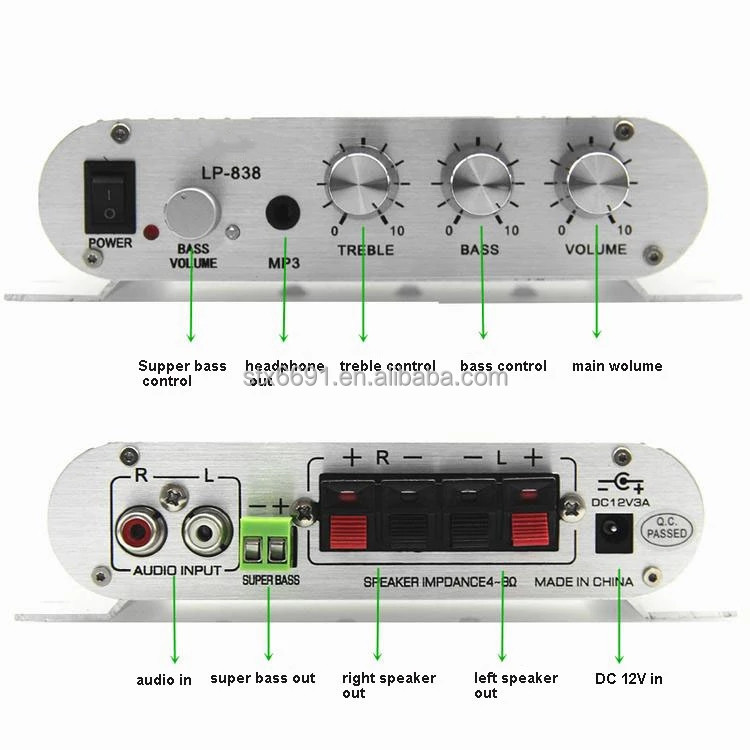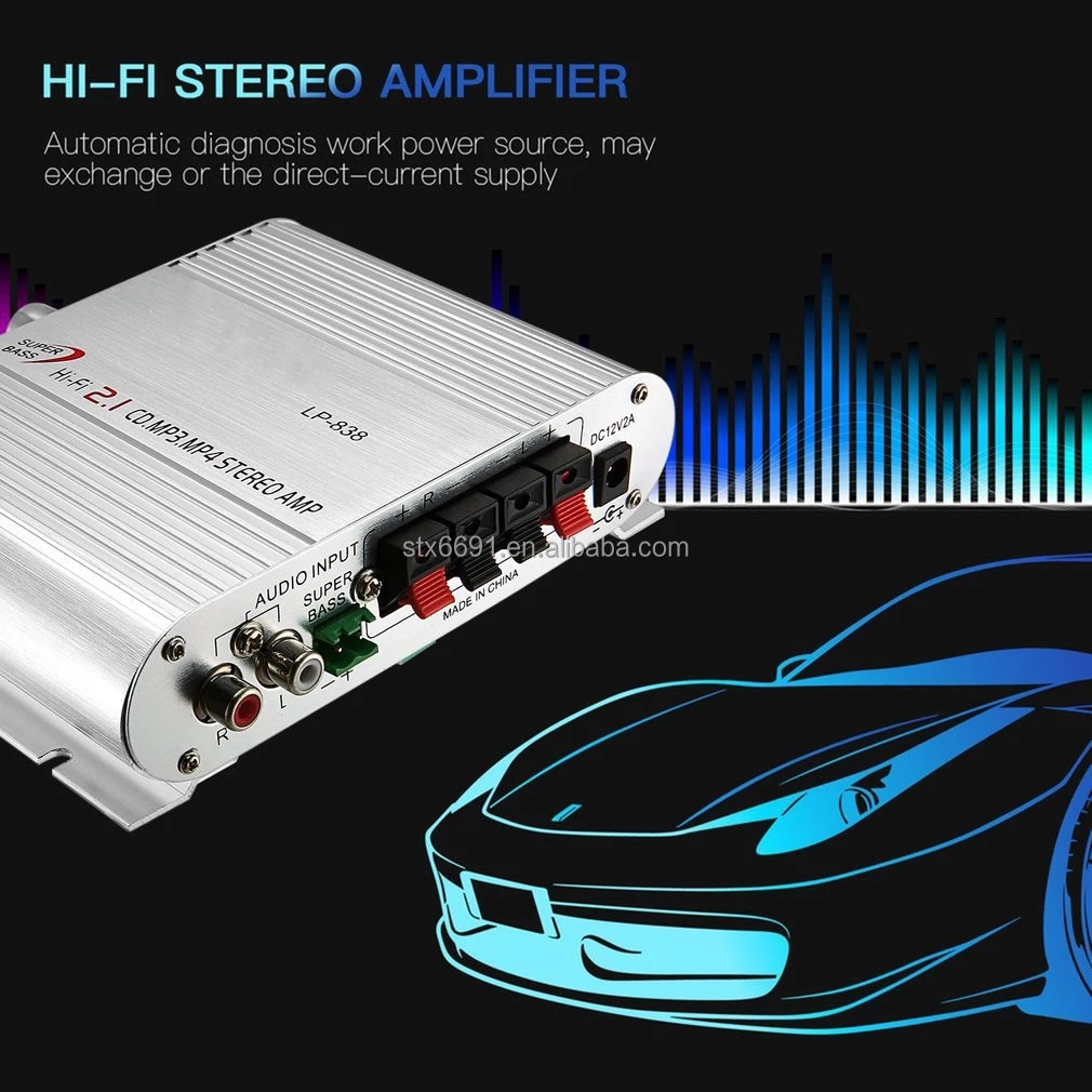 LP-838 Mini Hi-Fi Car Audio Amplifier 2.1 Car Stereo Player 12V Car Audio Subwoofer Amplifier LP838 MP3 MP4 2.0+LP-838