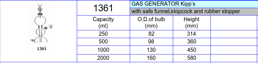 Lab Glass 250ml Kipp Hydrogen Generator Unit