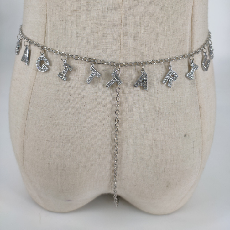Ladies Sexy Body Jewelry Custom Letter Bikini Chain Waist
