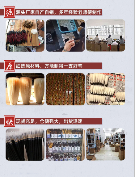 Product Features: This brush is an entry-level brush, suitable for both writing and printing. Best-selling for many years, it has become the first brush for many calligraphy lovers and practitioners. This brush is the first choice of many calligraphy lovers and practitioners. The materials are exquisite, the cap is moderate, the hardness is moderate, the nib is like a cone, the point is like a blade, the nib is neat and can be rotated at will. It is the best choice for beginner calligraphy.
