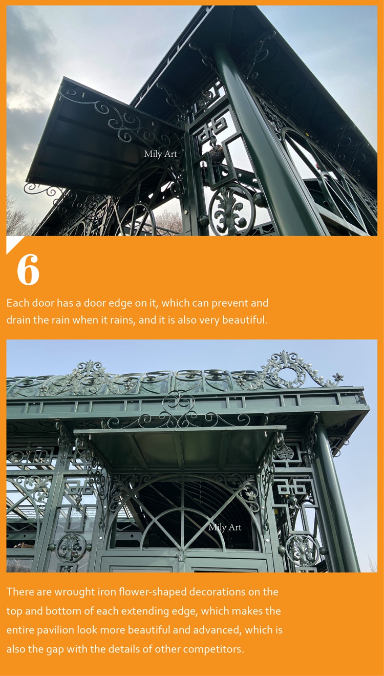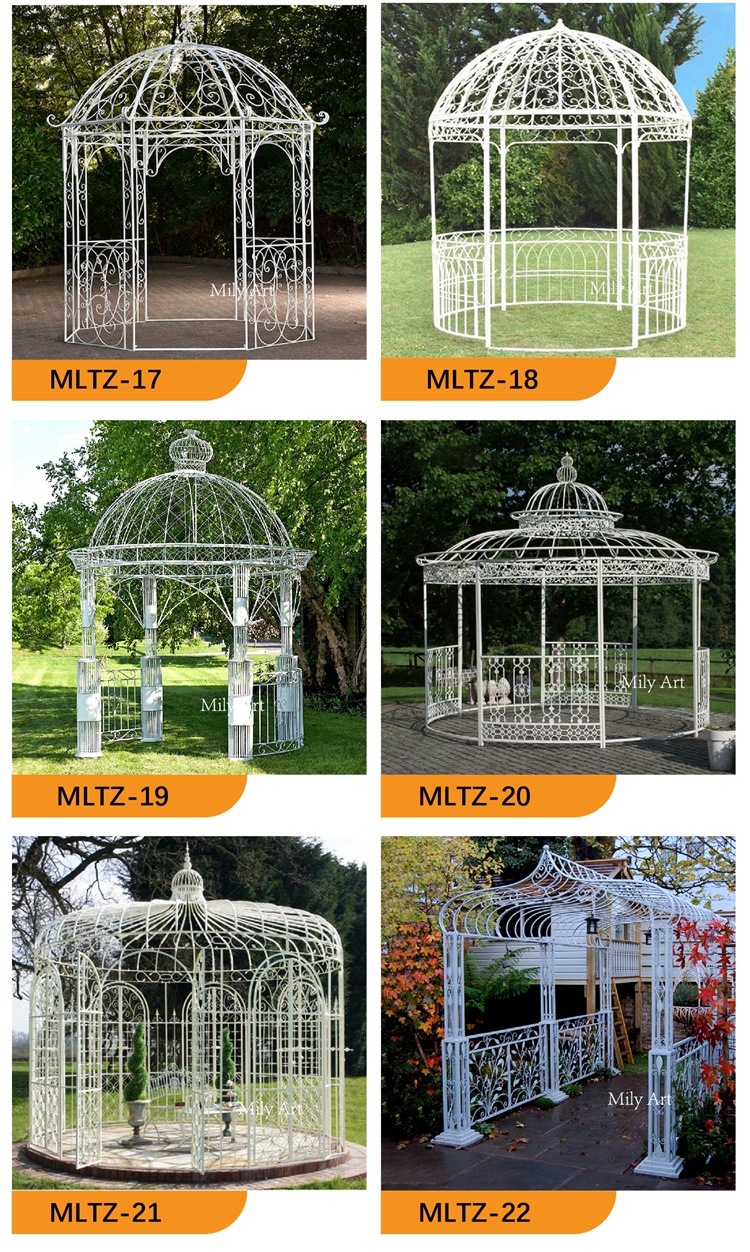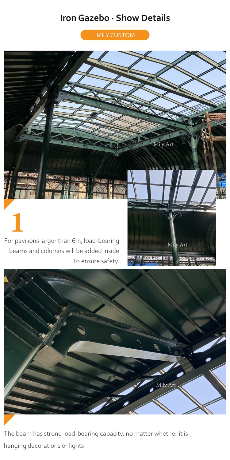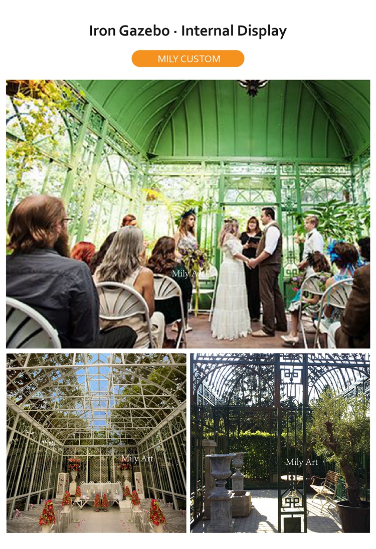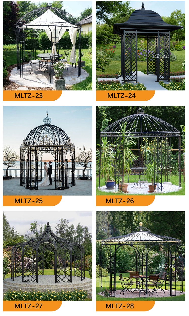>>Thisiron gazeboIt is suitable for any place, whether it is a garden or a hotel, even a venue for a large wedding. The iron pavilion is an eye-catching presence, whether it is decoration or holding a banquet, it shows its noble status.