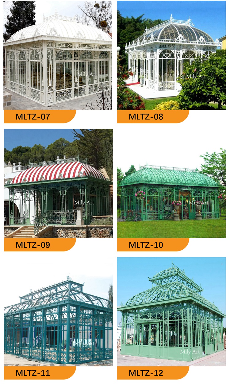 Outdoor Garden Decoration Orangery Greenhouse Wrought Iron Large Gazebo For Sale