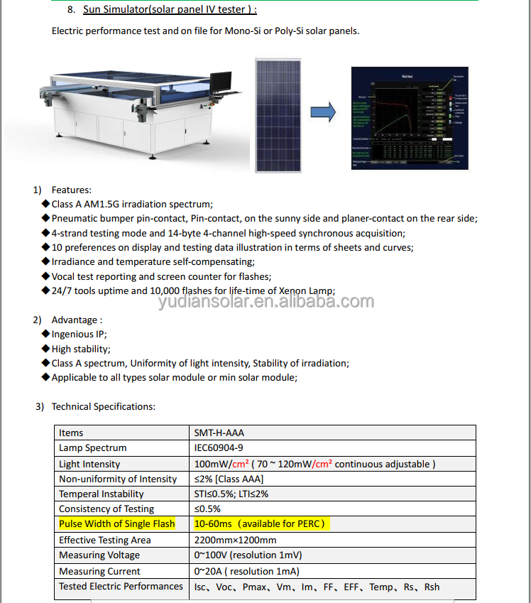 With strong technical strength and professionalism, Radiant has developed a variety of solar modules such as laminator (pneumatic clamshell laminator, large laminator, fully automatic laminator), framing machine, solar simulator, Cell Tester, etc. Production line equipment.