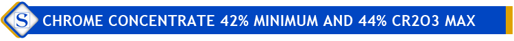 | product name: | Chrome concentrate 42% minimum and 44% Cr2O3 maximum | Cr2O3 (minimum): | up to 44% |