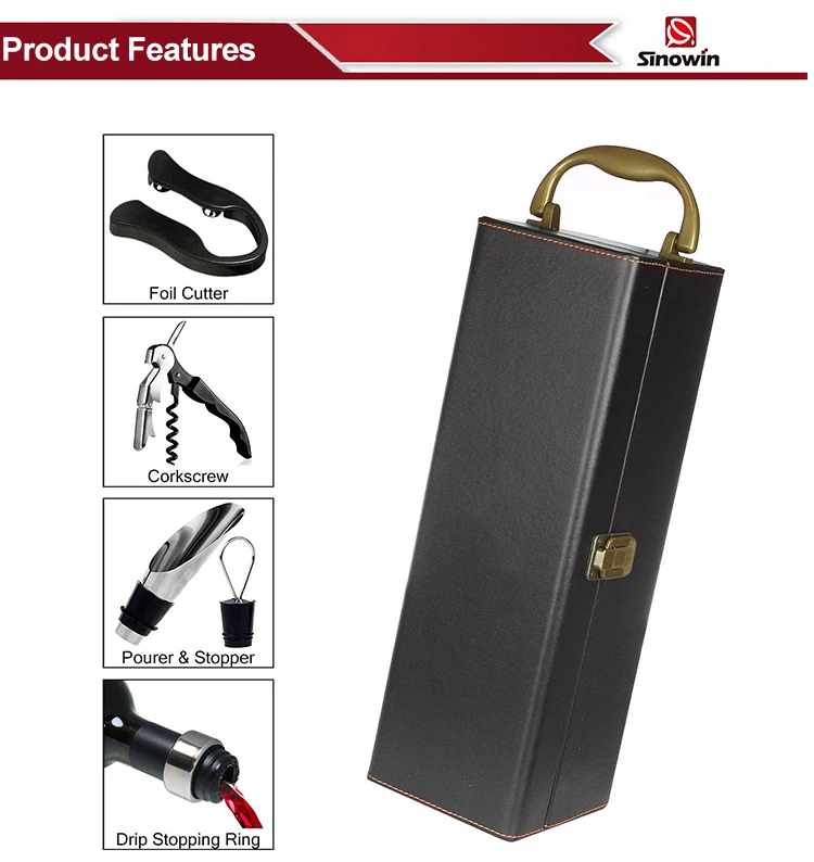 | Payment Terms: | L/C,Western Union,T/T,PayPal, Trade Assurance, Escrow; | Packaging Detail: | Packaging :Color box or Gift box and Customized gift box Normal Package Included * 1 x Wine Opener * 1 x Wine Pourer * 2 x Wine Stopper * 1 x Wine Collar * 1 x Foil Cutter * 1 x Leather Box and Can be Choose you like accessories set; |