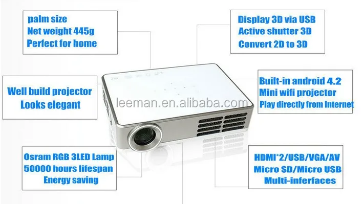 | feature: | Pico, Short Throw, 3D Ready, 3D Built-in, Internet Ready, Internet Built-in, Built-in Speaker | brand: | Liman |