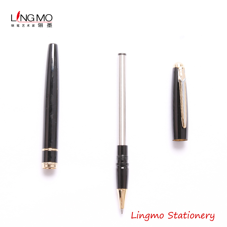 Lingmo Luxury Classic Black Gold Metal Rollerball Pen Premium Pen with Custom Logo